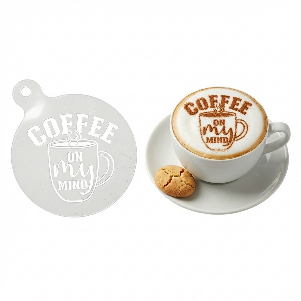 Taille du pochoir (en fonction du diamètre du récipient et du biscuit): Espresso 2,4” (6 cm)