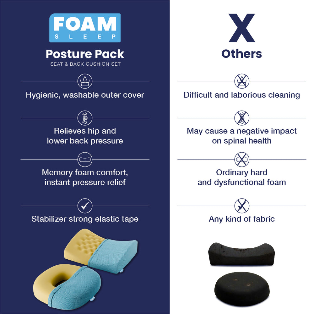 Experience the perfect synergy of lumbar support and seat cushioning. The Double Posture Pack’s advanced ergonomic design promotes healthy spine alignment while reducing fatigue and discomfort. Whether working from home or in the office, invest in your long-term wellbeing.
