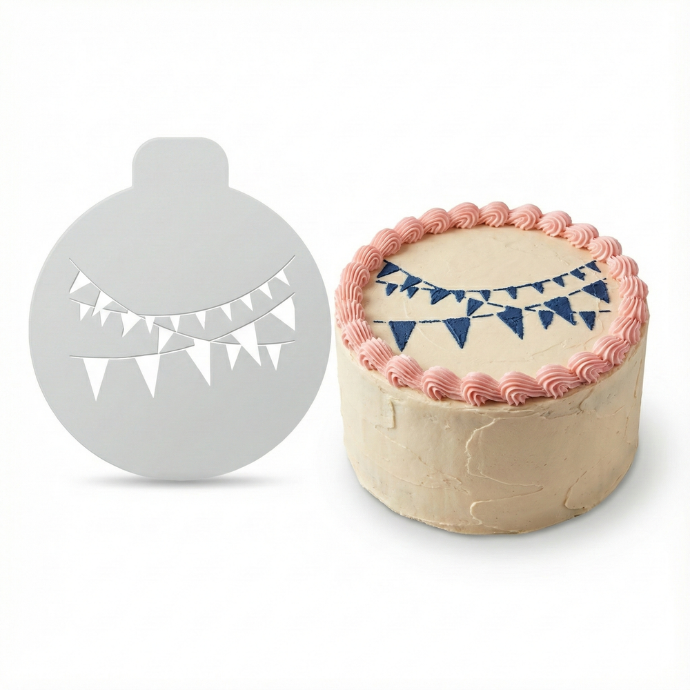 Bunting Party Flags | Round Cake Top Stencil – Reusable Cake Decorating Stencil