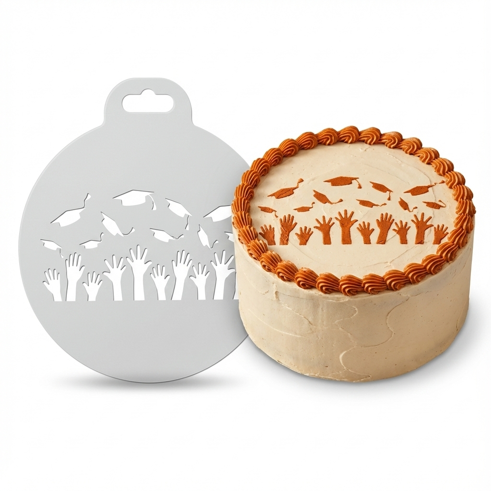 Cap Toss & Celebration | Round Cake Top Stencil – Reusable Cake Decorating Stencil
