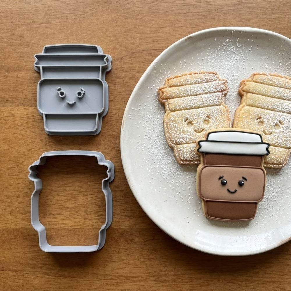 Kawaii Happy To Go Coffee Cookie Cutter & Stamp Set | Food-Grade PLA