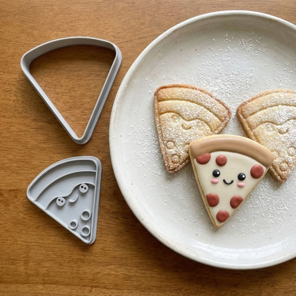 Kawaii Happy Pizza Slice Cookie Cutter & Stamp Set | Food-Grade PLA
