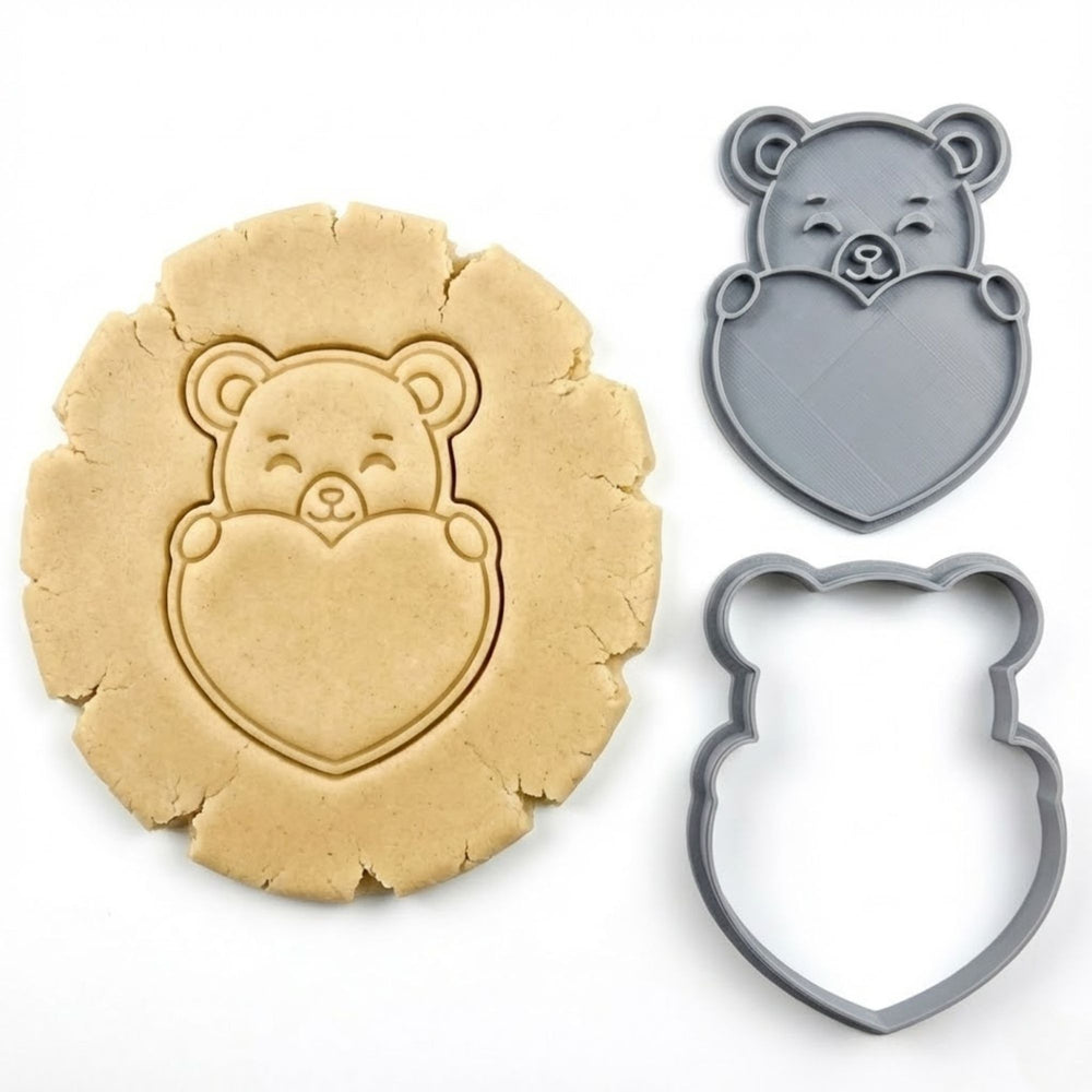 Heart Hugging Bear Cookie Cutter & Stamp Set | Food-Grade PLA