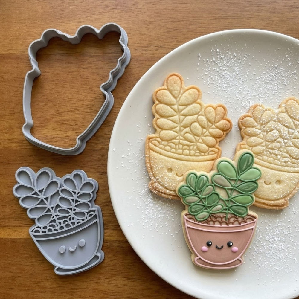 Kawaii Happy Succulent in a Pot Cookie Cutter & Stamp | Food-Grade PLA