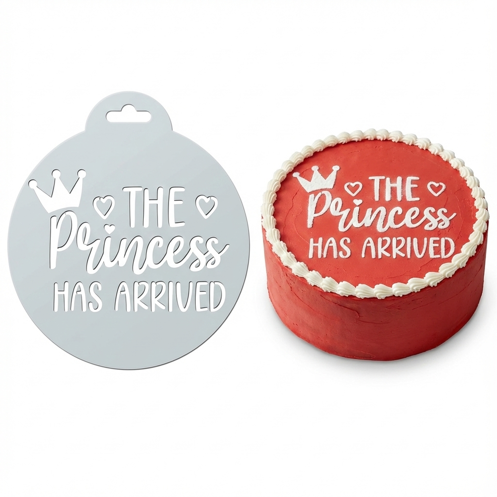 The Princess Has Arrived | Round Cake Top Stencil – Reusable Cake Decorating Stencil