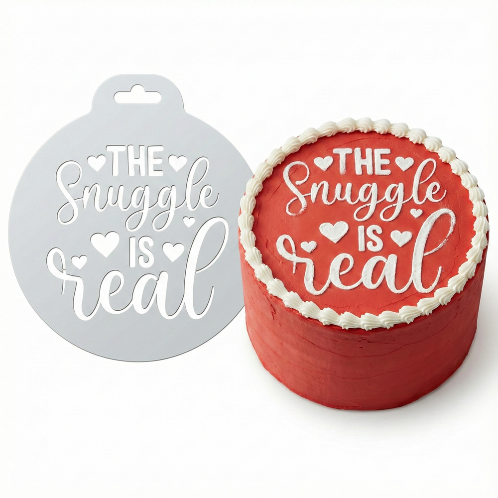 The Snuggle Is Real | Round Cake Top Stencil – Reusable Cake Decorating Stencil